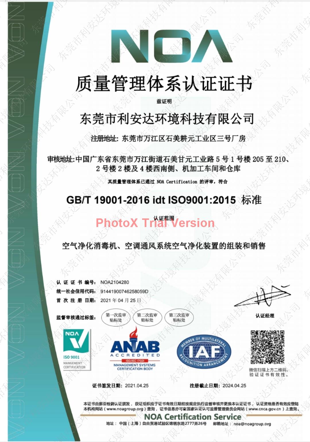 东莞市利安达环境科技有限公司隶属利安达集团,致力于医疗、商用、家用、教育系统、中央空调系统领域的洁净空气解决方案,是一家集空气净化消毒机的研发、生产、营销于一体的国家高新技术企业